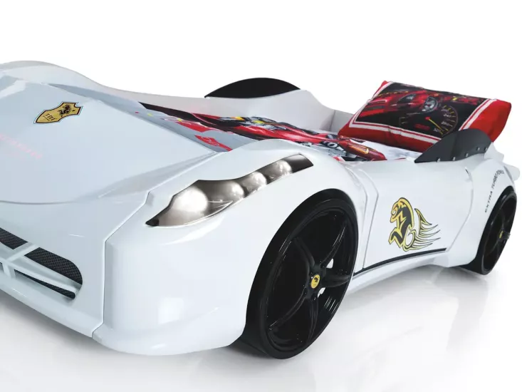 Sportif Ferrari tasarımına uygun formu sayesinde yatağın arka bölümüne estetik şekilde uyum sağlar. Hem dekoratif hem de fonksiyonel bir eklenti olarak çocuk odası konseptini tamamlar.